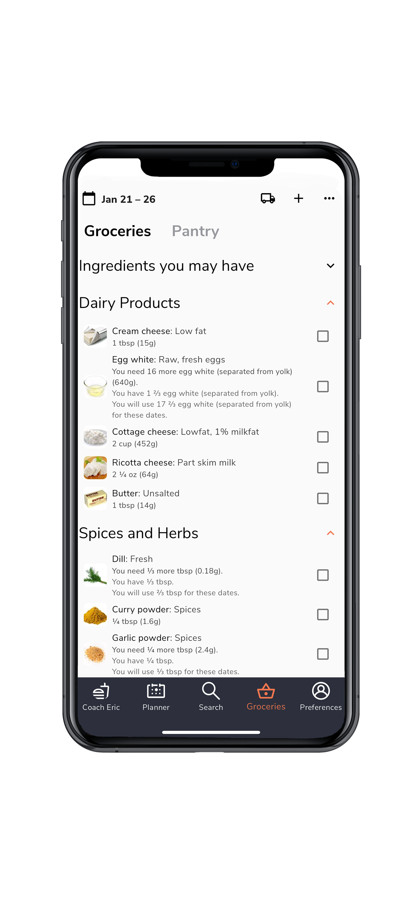 Get tailored grocery lists for easy shopping or delivery.